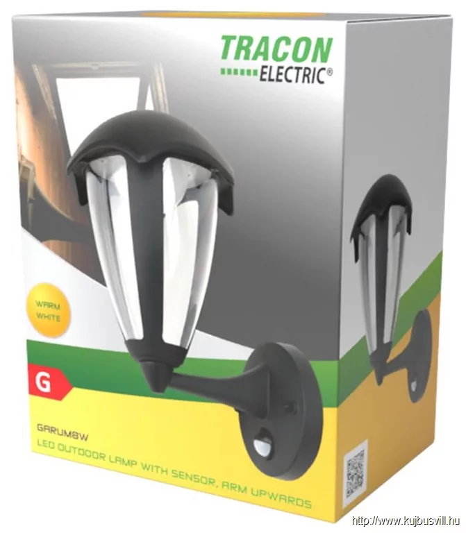 TRACON GARUM8W LED kültéri fali lámpa mozg.érz.álló kar 230 VAC, 50 Hz, 8 W, 550 lm, 3000 K, IP54, EEI=G