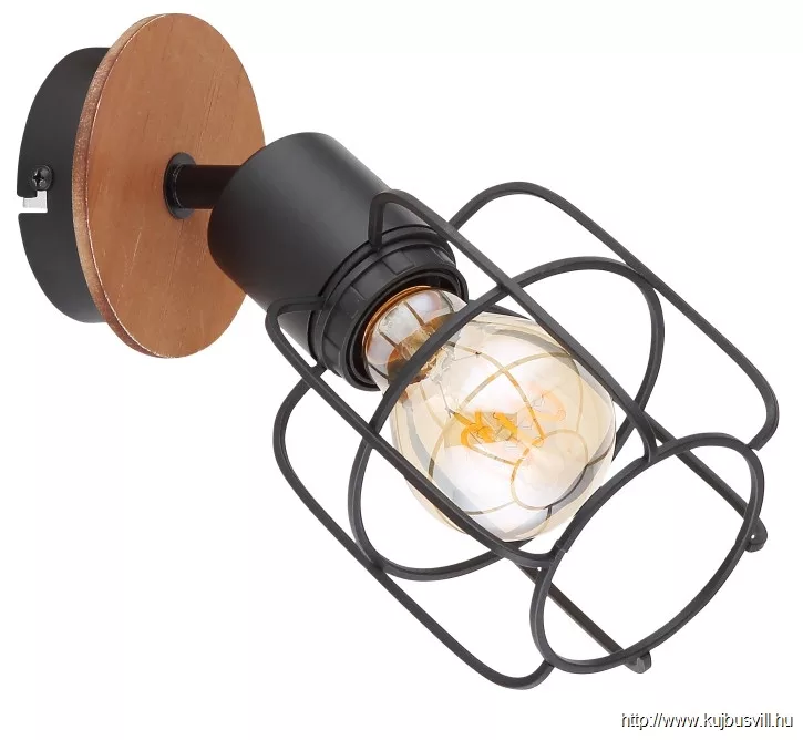 KIFUTÓ GLOBO 54037-1 WILLA Spotlámpa fém fekete, barna fa dekorral.1XE27