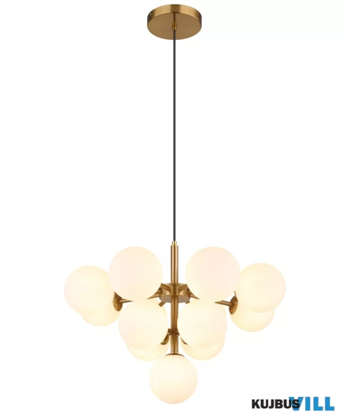 GLOBO 56143-13G GRAPPY Függeszték fém aranyszínű matt, fehér színű üveg gömbök, fek