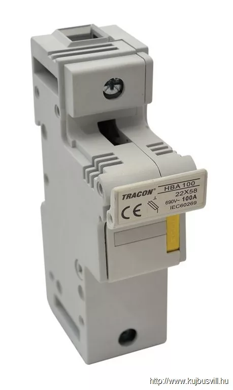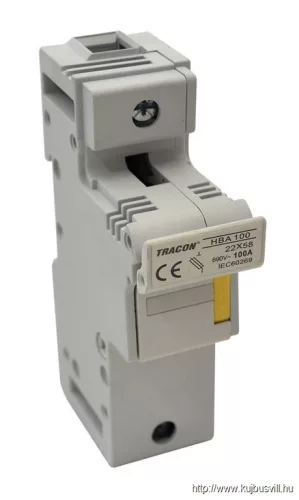 TRACON HBA-1P-100 Szakaszolókapcsoló-biztosító hengeres bizt.hoz, maszkolható 100A, 22x58mm; Un=230V/400V