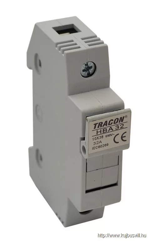 TRACON HBA-1P-32 Szakaszolókapcsoló-biztosító hengeres bizt.hoz, maszkolható 32A, 10x38mm; Un=230V/400V