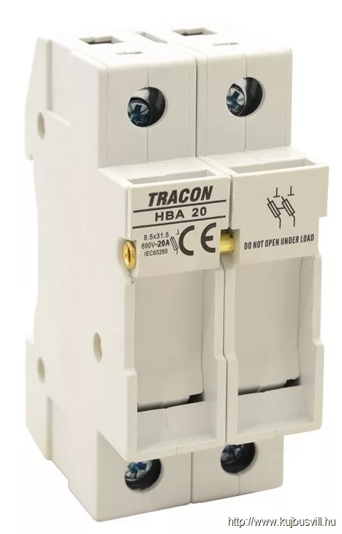 TRACON HBA-2P-20 Szakaszolókapcsoló-biztosítóhengeres bizt.hoz, maszkolható 20A, 8x32mm; Un=230V/400V