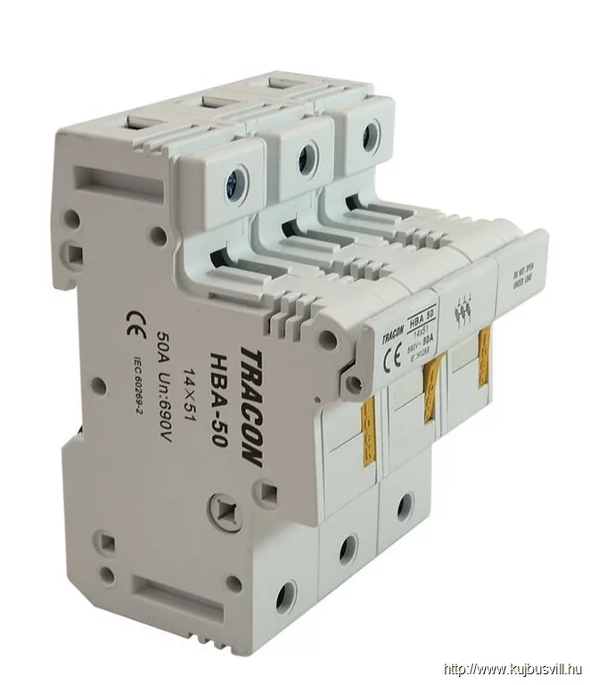 TRACON HBA-3P-50 Szakaszolókapcsoló-biztosítóhengeres bizt.hoz, maszkolható 50A, 14x51mm; Un=230V/400V