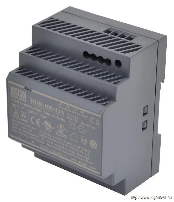 TRACON HDR-100-12N DIN sínre szerelhető tápegység szabályozható DC kimenettel 85-264 VAC / 12-13,8 VDC, 90 W, 0-7,5 A