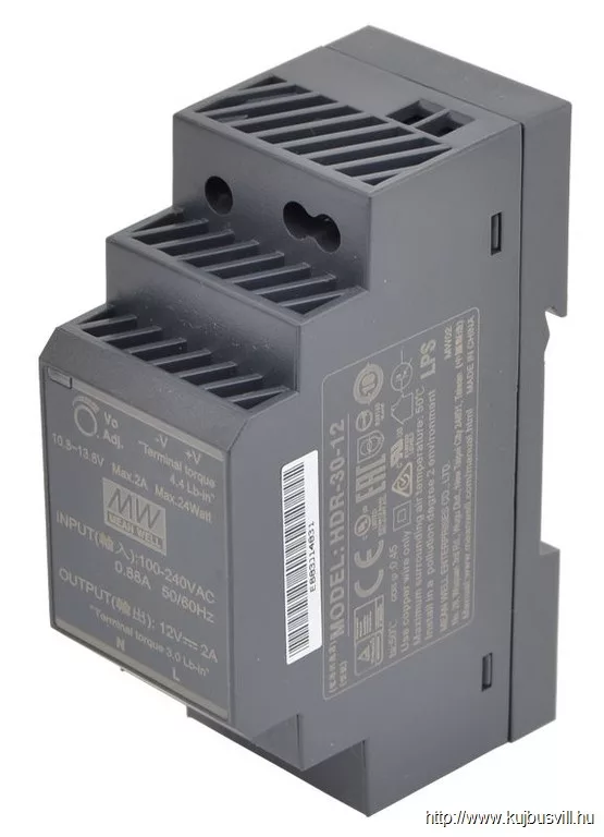 TRACON HDR-30-24 DIN sínre szerelhető tápegység szabályozható DC kimenettel 85-264 VAC / 21,6-29 VDC, 36 W, 0-1,5 A