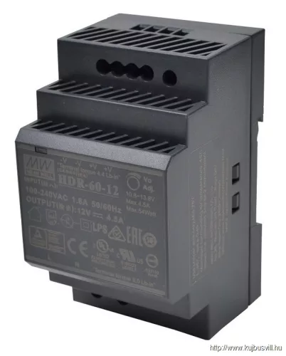 TRACON HDR-60-12 DIN sínre szerelhető tápegység szabályozható DC kimenettel 85-264 VAC / 10,8-13,8 VDC, 54 W, 0-4,5 A