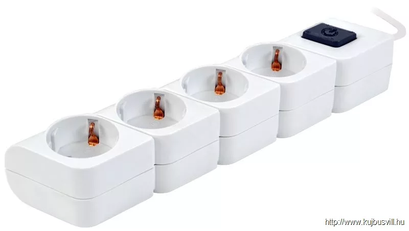 TRACON HKD-4 Hordozható elosztósáv kapcsolóval, fehér 4×SCHUKO, 1,4m, max.16A, 250VAC, 3680W, 3x1mm2, H05VV-F