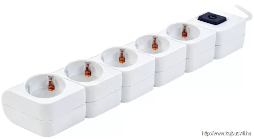 TRACON HKD-5 Hordozható elosztósáv kapcsolóval, fehér 5×SCHUKO, 1,4m, max.16A, 250VAC, 3680W, 3x1mm2, H05VV-F