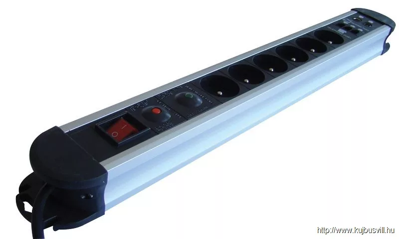 TRACON HKTMF6-3M-KT-ALU ALU 6-os elosztó kapcsoló+túlfesz+túláram+koax+tel, csapos 6×FRENCH, 3m, max.16A, 250VAC, 3680W, H05VV-F