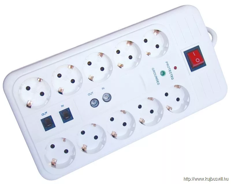 TRACON HNKTM10-3M-KT Négyzetes10-es elosztó kapcsolóval+túlfesz+ túláram+koax+tel 10×SCHUKO, 3m, max.16A, 250VAC, 3680W, H05VV-F