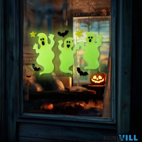 Halloween-i foszforeszkáló ablakdekor szellem 29x16cm - 56543B