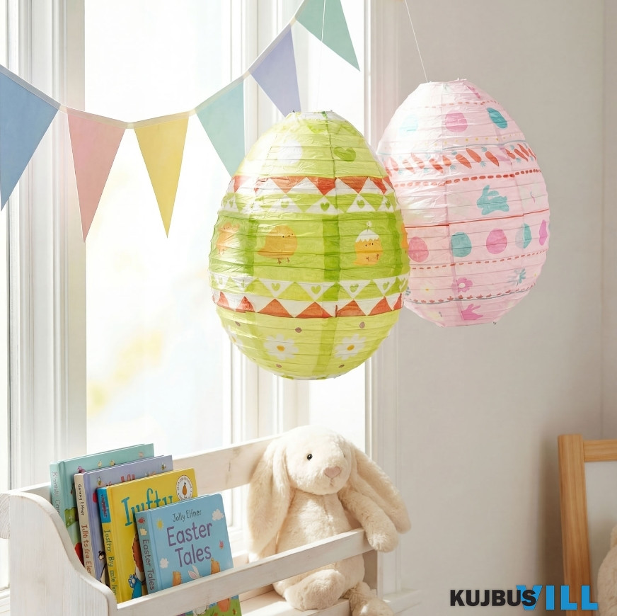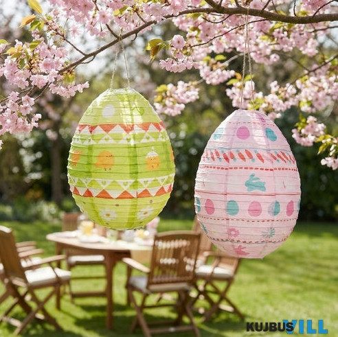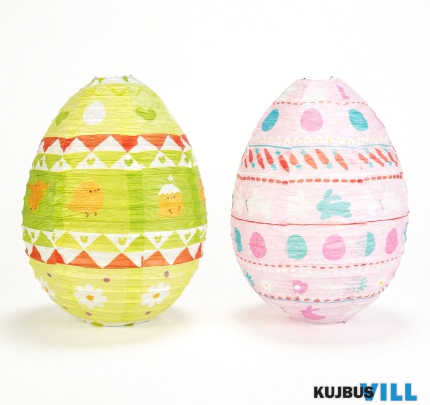 Húsvéti dekoráció - papír lampion - tojás - zöld, rózsaszín - Ø30 cm - 57990