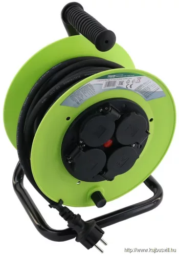 TRACON KDZ-4/10G Kábeldobos hosszabbító, fémvázzal 4×SCHUKO, 10m, 250V AC, 16 A, 3×1,5mm2, H07RN-F, IP44