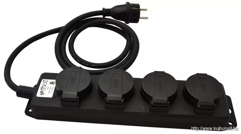 TRACON KE4-3M Kültéri elosztósáv, fekete 16A/250VAC, IP44, H07RN-F, 3G1.5, 3m, 4×SCHUKO