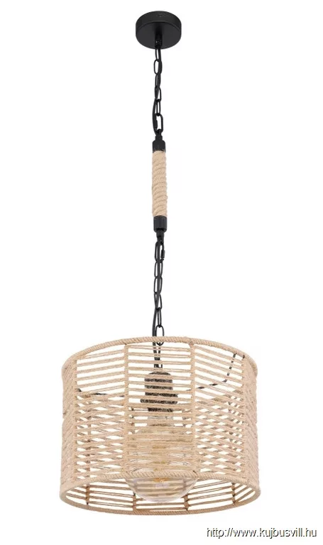 KIFUTÓ GLOBO 15672H HALIA Függeszték matt fekete fém váz, barna kenderkötéllel körbefonva. Ø:310, H:1200, fényforrás nélkül 1