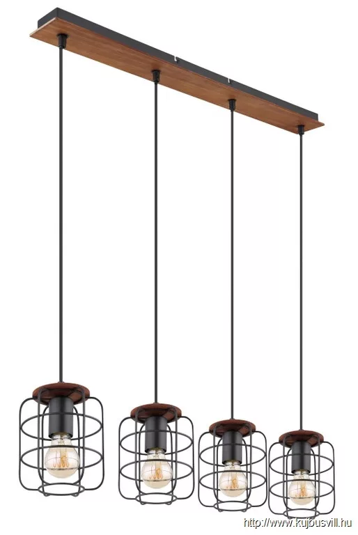 KIFUTÓ GLOBO 54037-4H WILLA Függeszték lámpa fém fekete, barna fa dekorral.4xE27
