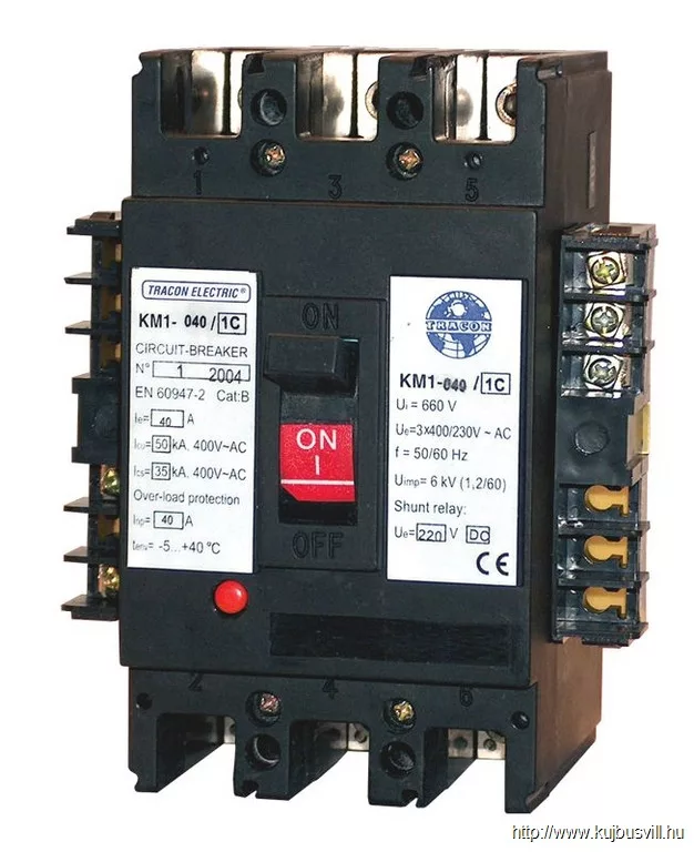 TRACON KM7-700/2 Kompakt megszakító, 230V AC feszültségcsökkenési kioldóval 3×230/400V, 50Hz, 700A, 65kA, 2×CO