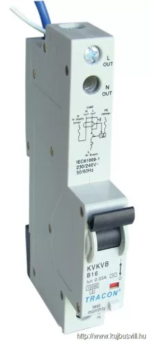 TRACON KVKV-6/10 Kombinált védőkapcsoló, 2P, 1 modul, C karakterisztika 6A, 100mA, 10kA, AC, E3