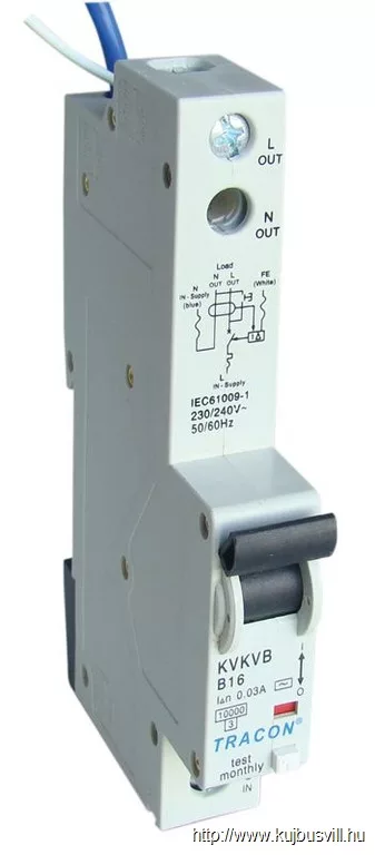 TRACON KVKVB-20/10 Kombinált védőkapcsoló, 2P, 1 modul, B karakterisztika 20A, 100mA, 10kA, AC, E3