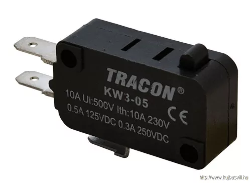 TRACON KW3-05 Helyzetkapcsoló, mikro, ütközős 1×CO 10A/230VAC, 0,3A/250VDC, 4,8x0,5 mm, IP00