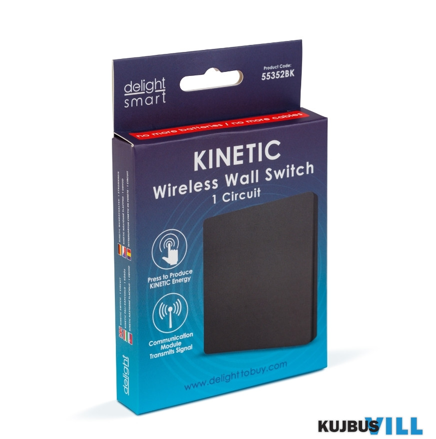 Kinetic fali kapcsoló 433 Mhz, 1 körös, IP20, fekete - 55352BK
