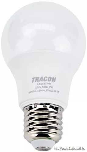TRACON LAS607NW Gömb burájú LED fényforrás SAMSUNG chippel 230V,50Hz,7W,4000K,E27,630 lm,200°,A60,SAMSUNG chip, EEI=F