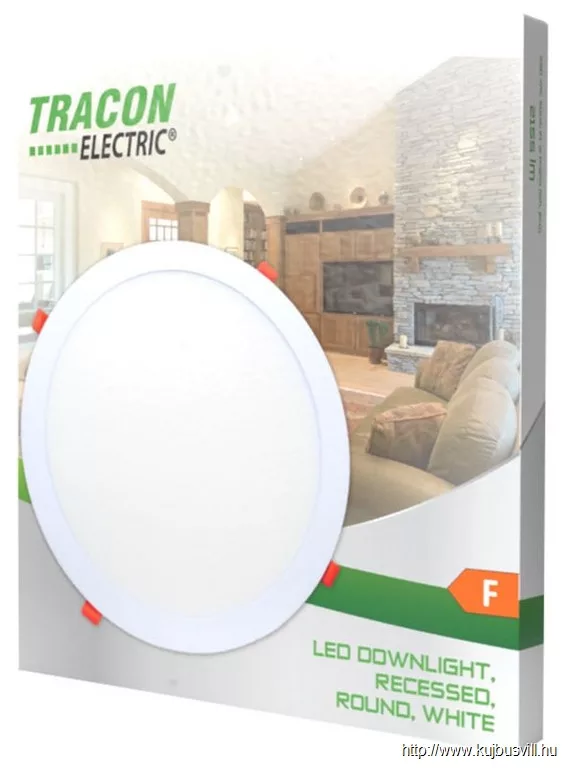 TRACON LED-DL-21WW Beépíthető LED mélysugárzó, kerek, fehér 230 VAC 50Hz, 21 W, 2155 lm, D=300 mm, 2700 K, IP40, EEI=F
