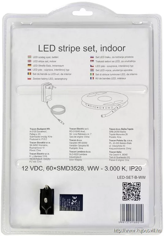 TRACON LED-SET-B-WW LED szalag szet, beltéri SMD3528,30LED/m,4,8W/m,120lm/m,W=8 mm,3000K,IP20, EEI=G