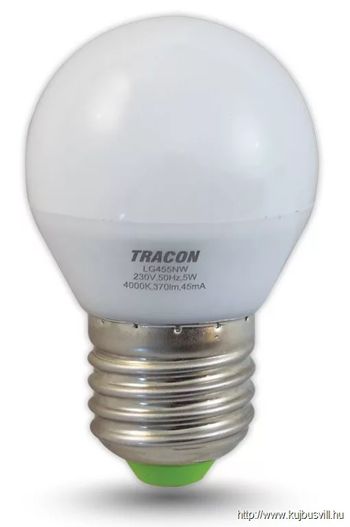 TRACON LG455NW LED fényforrás 230 VAC, 5 W, 4000 K, E27, 380 lm, 200°, G45, EEI=G