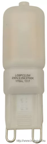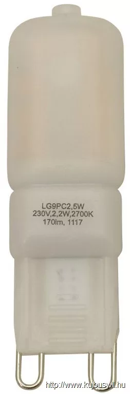 TRACON LG9PC2,5W LED G9 fényforrás műanyag házban 230 V, 50 Hz, G9, 2 W, 180 lm, 3000 K, 300°, EEI=F