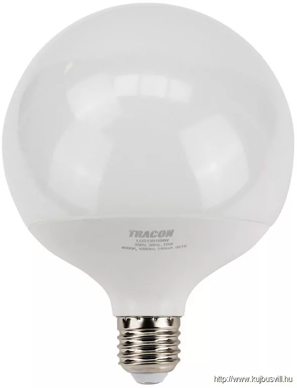 TRACON LGS12018NW Gömb burájú LED fényforrás SAMSUNG chippel 230V,50Hz,18W,4000K,E27,1820lm,270°,G120,SAMSUNG chip, EEI=F