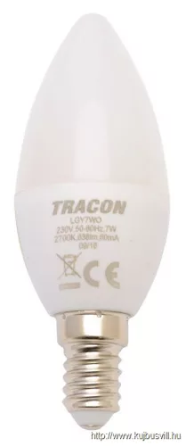 TRACON LGY7W Gyertya burájú LED fényforrás, tejüveg 230 V, 50 Hz, 7 W, 2700 K, E14, 600 lm, 180°, EEI=F