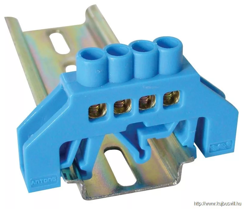 TRACON NPE-B6-4 Szigetelt földelősín (N/PE), kék 230/400VAC, 63A, 6×9mm, 4P, IP20
