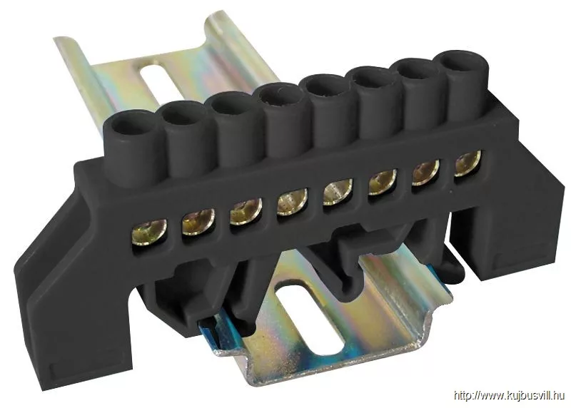 TRACON NPE-BK6-8 Szigetelt földelősín (N/PE), fekete 230/400VAC, 63A, 6×9mm, 8P, IP20