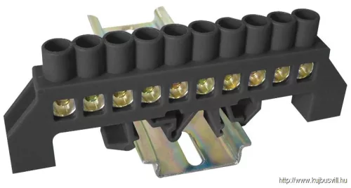 TRACON NPE-BK8-10 Szigetelt földelősín (N/PE), fekete 230/400VAC, 100A, 8×12mm, 10P, IP20