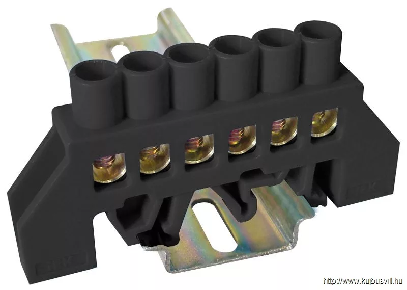 TRACON NPE-BK8-6 Szigetelt földelősín (N/PE), fekete 230/400VAC, 100A, 8×12mm, 6P, IP20