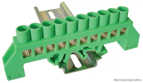 TRACON NPE-G8-10 Szigetelt földelősín (N/PE), zöld 230/400VAC, 100A, 8×12mm, 10P, IP20