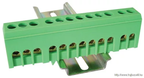 TRACON NPE-ZG Szigetelt földelősín (N/PE), zárt,zöld 230/400VAC, 63A, 6×9mm, 12P, IP20