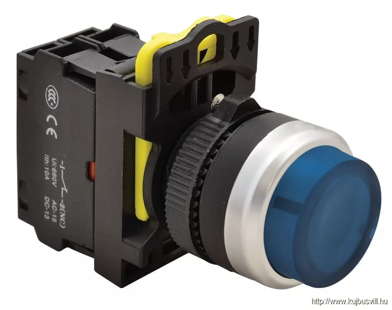 TRACON NYG3-HLB Világító nyomógomb, kiálló, kék 1×NO, 5A/230V AC-15, IP65, LED 230V AC/DC
