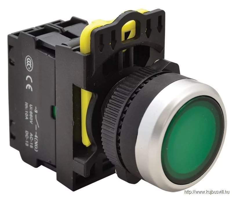 TRACON NYG3-LG Világító nyomógomb, zöld 1×NO, 5A/230V AC-15, IP65, LED 230V AC/DC