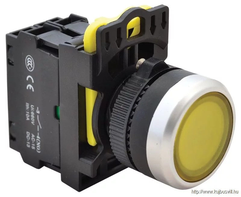TRACON NYG3-LY Világító nyomógomb, sárga 1×NO, 5A/230V AC-15, IP65, LED 230V AC/DC