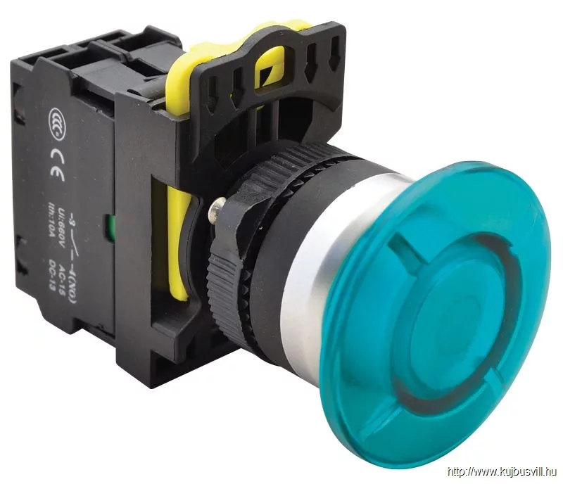 TRACON NYG3-MLB Gombafejű világító nyomógomb,kék 1×NO, 5A/230V AC-15, IP65, 40mm, LED 230V AC/DC