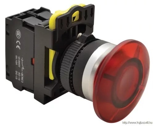 TRACON NYG3-MLR Gombafejű világító nyomógomb,piros 1×NC, 5A/230V AC-15, 40mm, IP65, LED 230V AC/DC
