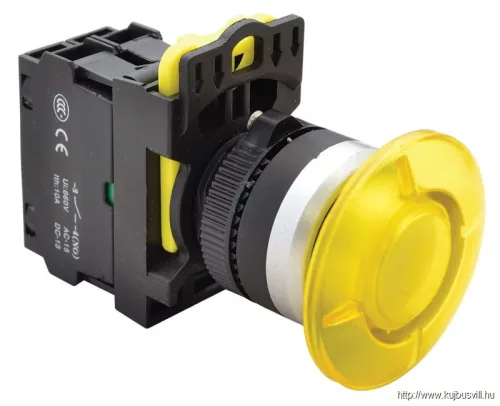 TRACON NYG3-MLY Gombafejű világító nyomógomb,sárga 1×NO, 5A/230V AC-15, 40mm, IP65, LED 230V AC/DC