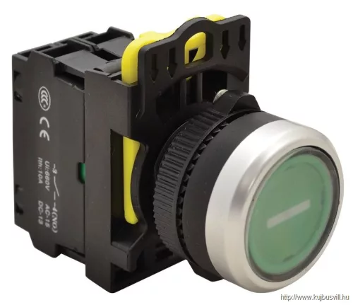 TRACON NYG3-P1L Jelölt, világító nyomógomb, zöld, (fehér I) 1×NO, 5A/230V AC-15, IP65, LED 230V AC/DC