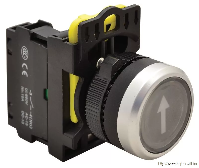 TRACON NYG3-P4 Jelölt nyomógomb, fekete, (fehér nyíl) 1×NO, 5A/230V AC-15, IP65