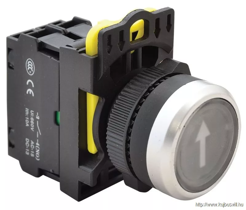 TRACON NYG3-P4L Jelölt, világító nyomógomb, fekete, (fehér nyíl) 1×NO, 5A/230V AC-15, IP65, LED 230V AC/DC