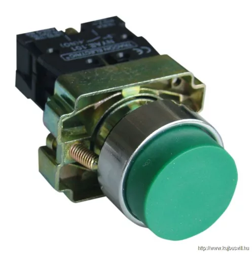 TRACON NYGBL31ZT Tokozott kiálló nyomógomb, fémalapra szerelt, zöld 1×NO, 3A/240V AC, IP44
