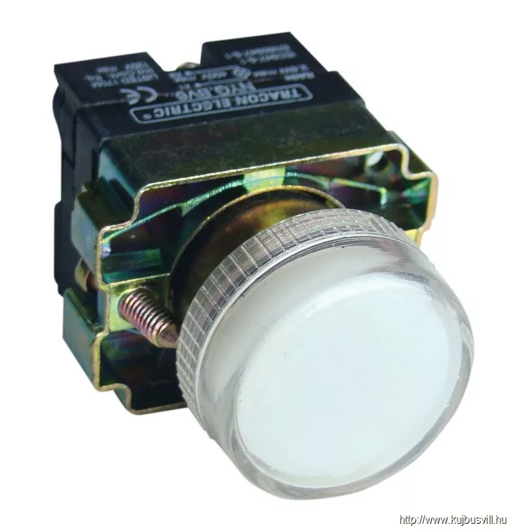TRACON NYGBV61T Tokozott jelzőlámpa, fémalapra szerelt, fehér, izzó nélkül 3A/400V AC, IP44, NYGI230