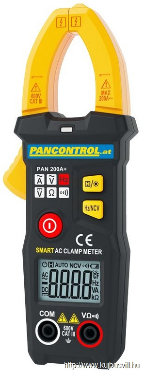 TRACON PAN200A+ Digitális lakatfogó ACV/DCV 600V , ACA 200A, R, Hz,d=20mm
